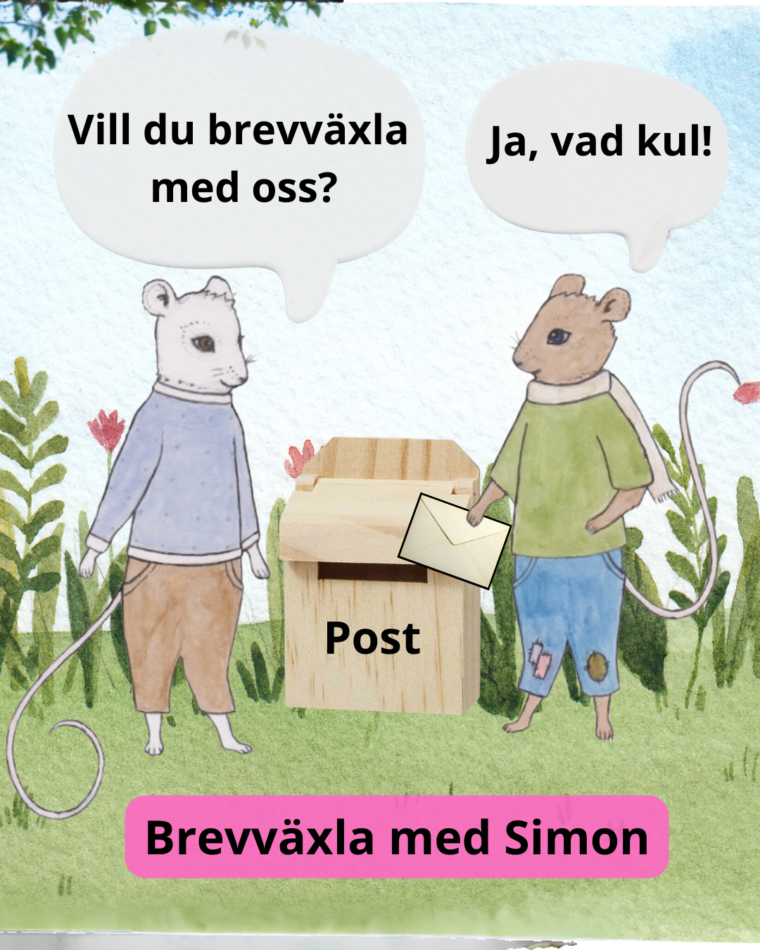 Du får gärna berätta vad som händer hos dig också — om du vill. Det är helt frivilligt, men Simon älskar att höra om dina upptäckter. Du kan också rita en teckning och skicka, Simon blir jätteglad all post.